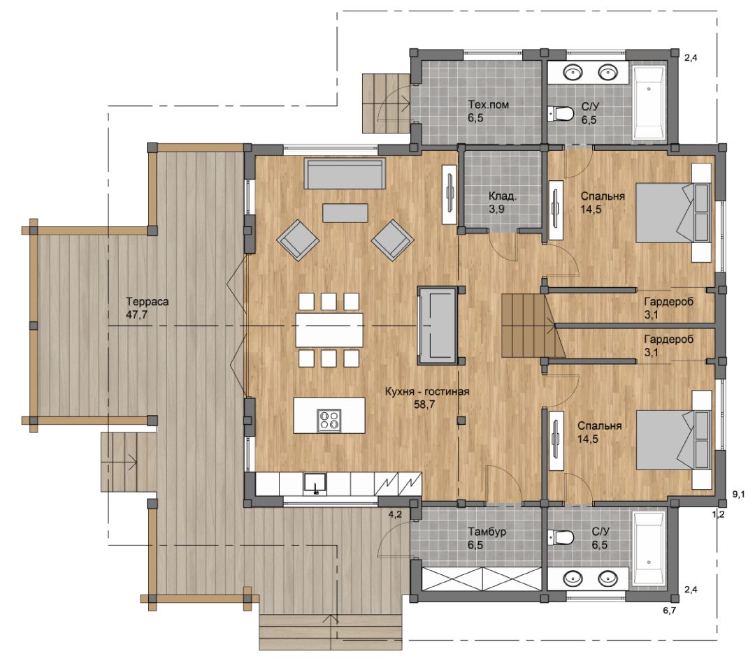 В комплект поставки деревянной конструкции +NODWERK входит: